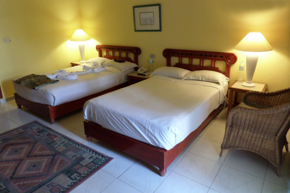В современных номерах — балкон с видом на центральную площадку с бассейном, ванная комната (полотенца, фен), мини-бар, спутниковое телевидение, журнальный столик, плетёные кресла, телефон, холодильник, сейф. Доступны услуги парикмахерской, прачечной, глажки одежды.