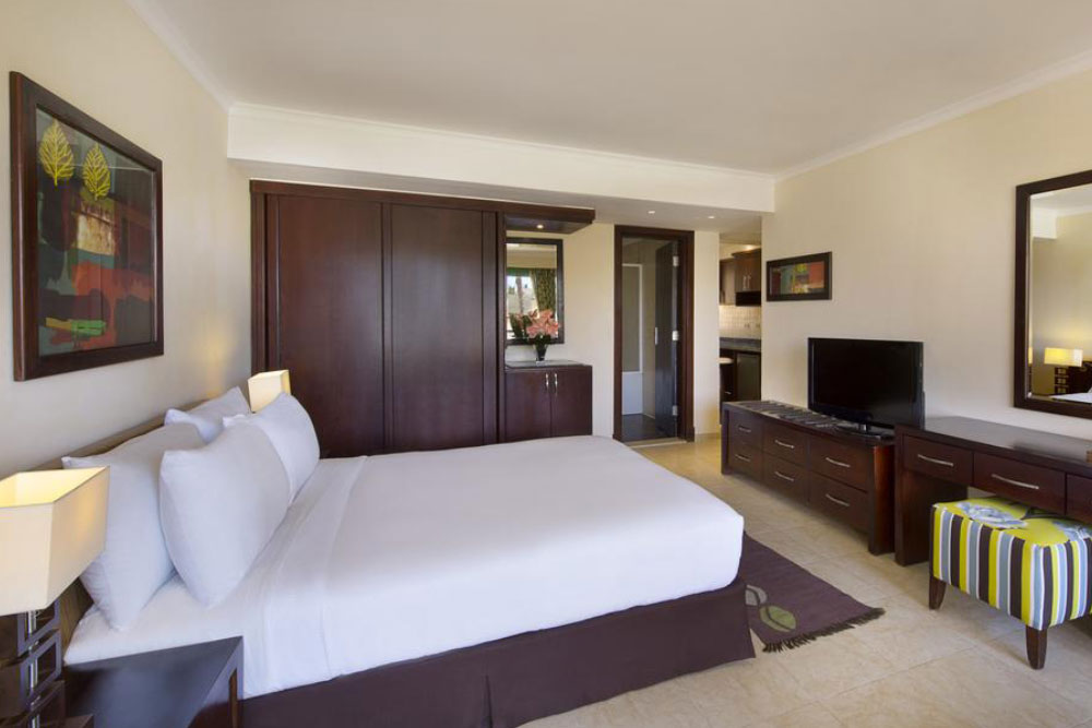 В номерах — балкон (или терраса) с видом на море, бассейны или сады, мраморная ванная комната, холодильник, принадлежности для чая/кофе, кофеварка, гладильная доска, утюг, письменный стол с настольной лампой, телефон. За дополнительную плату и по запросу предоставляется мини-бар. Доступны услуги няни, парикмахерской, прачечной, химчистки, глажки одежды.
