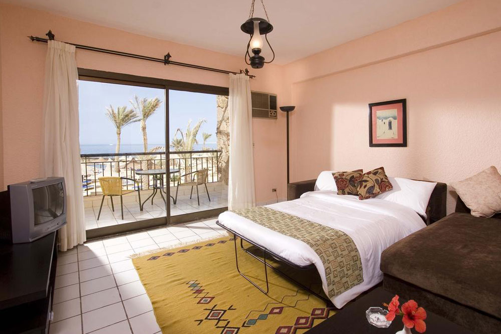 В светлых, современных, просторных номерах, оформленных в традиционном египетском стиле, — меблированный балкон (или терраса) с видом на ухоженный пальмовый сад, кондиционер, спутниковое телевидение, заполненный мини-бар, ванная комната (фен, туалетные принадлежности), телефон, кофеварка, чайник. Доступны услуги прачечной, чистки обуви, глажки одежды.
