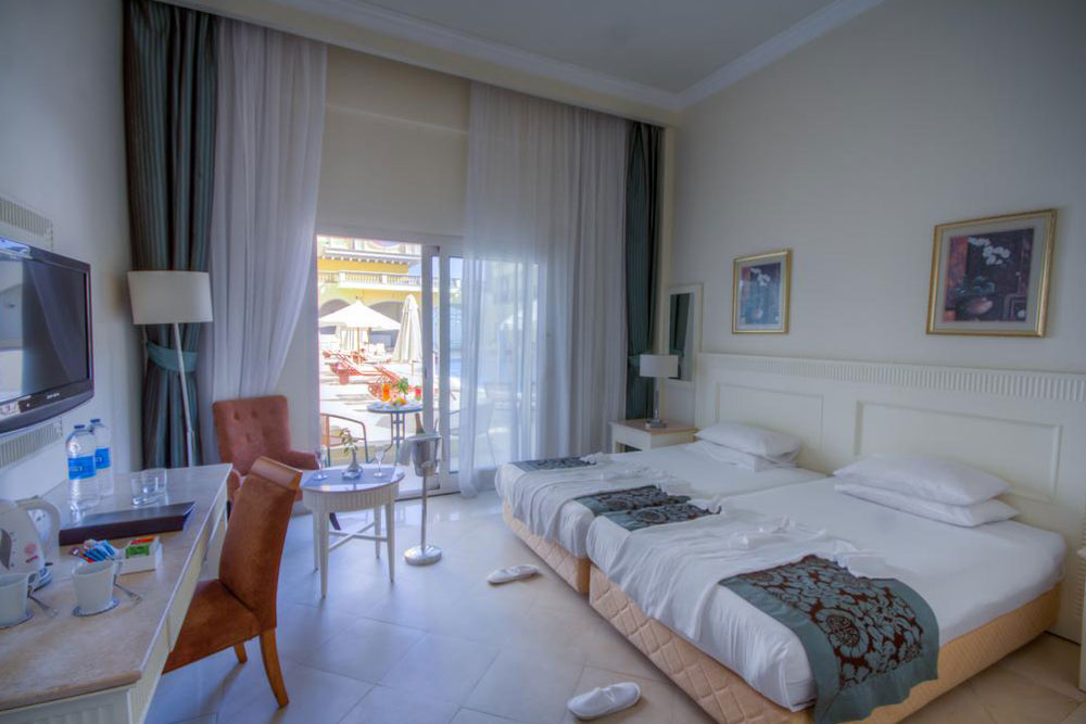Гостям предоставляются стильные номера с кондиционерами, мягкими кроватями, спутниковым телевидением. С балконов открывается прекрасный вид на курортный город.
