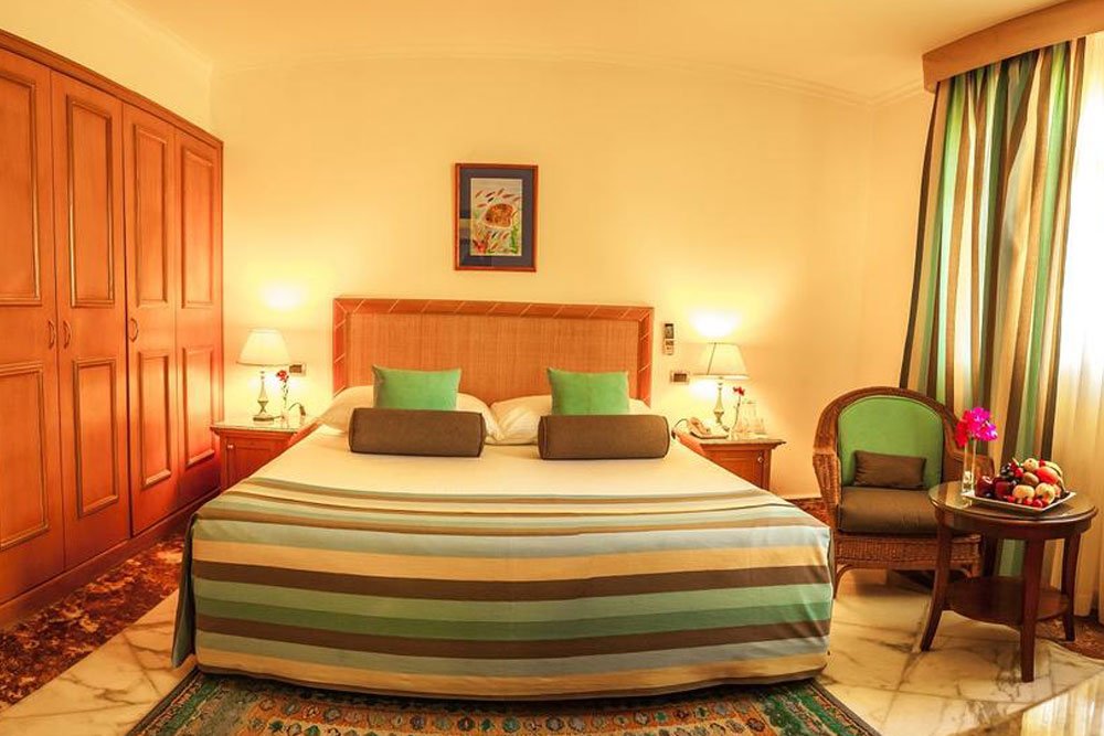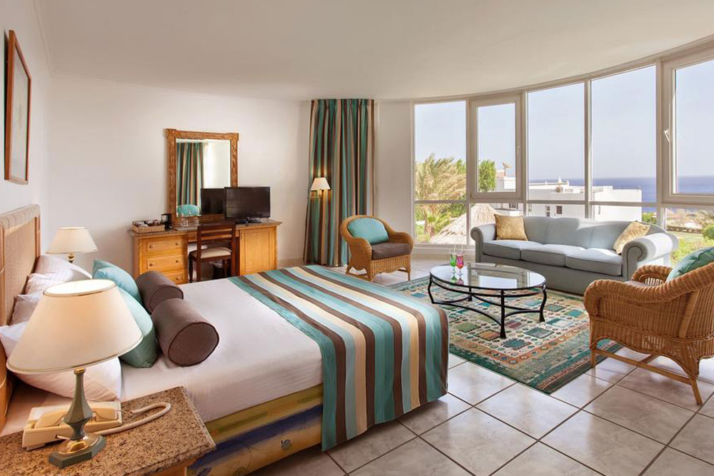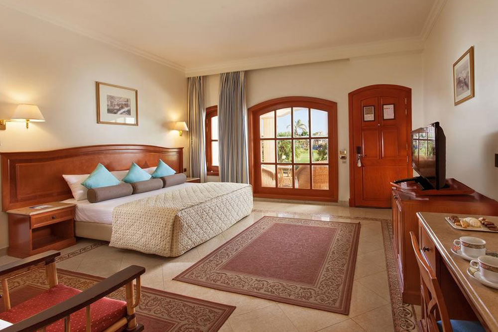 В светлых и ярких номерах — балкон или терраса, ванная комната (фен), спутниковое телевидение, кондиционер, телефон, мини-бар, холодильник, сейф. Пол выложен кафельной плиткой и застелен коврами в египетском стиле. Доступны услуги парикмахерской, прачечной, химчистки, няни.