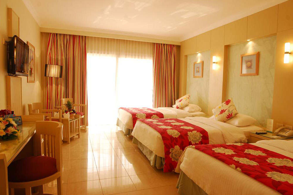 В современных просторных номерах — балкон или терраса с видом на бульвар Наама-Бей, бассейны или Красное море. В каждом номере — ванная комната, кондиционер, мини-бар, спутниковое телевидение, телефон, холодильник. Доступны услуги прачечной, химчистки.