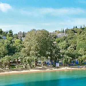 Отель Grecotel Daphnila Bay расположен на острове Корфу посреди цветущих садов. Отель стоит на зелёном холме, откуда открывается вид на залив Дассия.