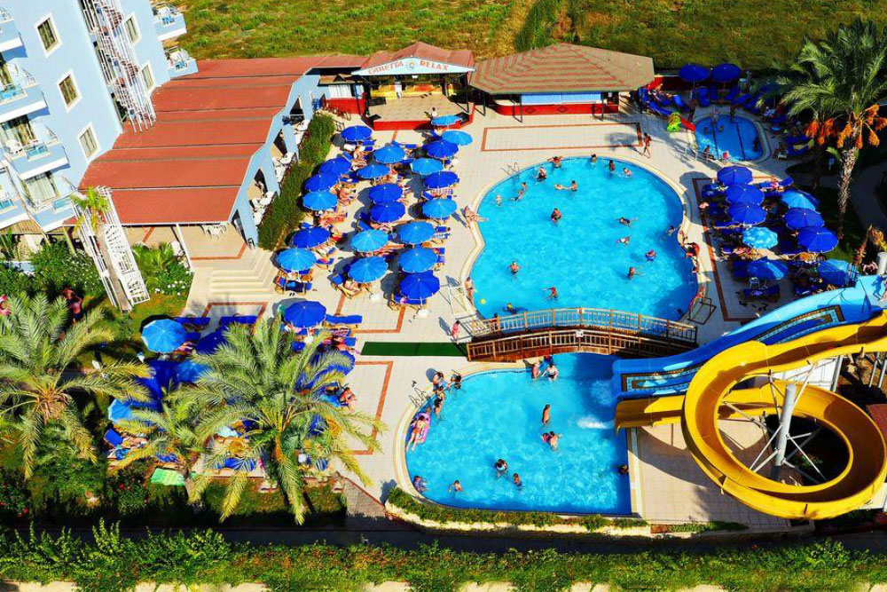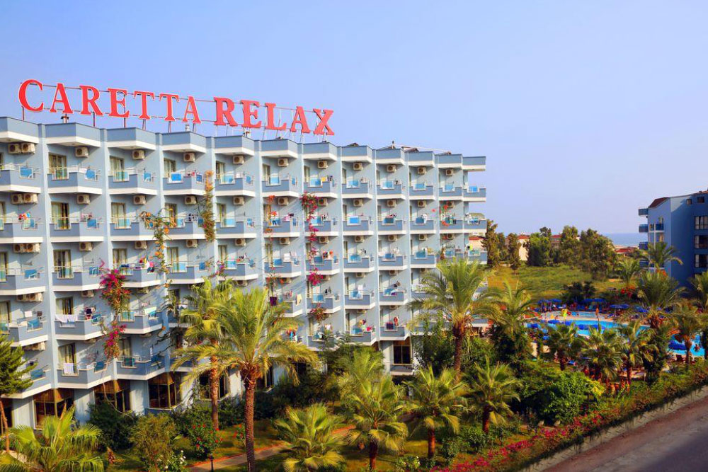 Небольшой уютный отель с садом находится на берегу Средиземного моря, в 12 км от г. Аланья, в посёлке Конаклы. До аэропорта Газипаша-Аланья — 55 км. До аэропорта Анталия — 110 км. До центра Анталии — 120 км. До пляжа — 150 м (через дорогу от отеля). Принадлежит сети отелей Caretta Hotels. Гости отеля Caretta Relax могут пользоваться частью инфраструктуры соседнего отеля Club Hotel Caretta Beach: пляжем, баром, дискотекой на пляже отеля.