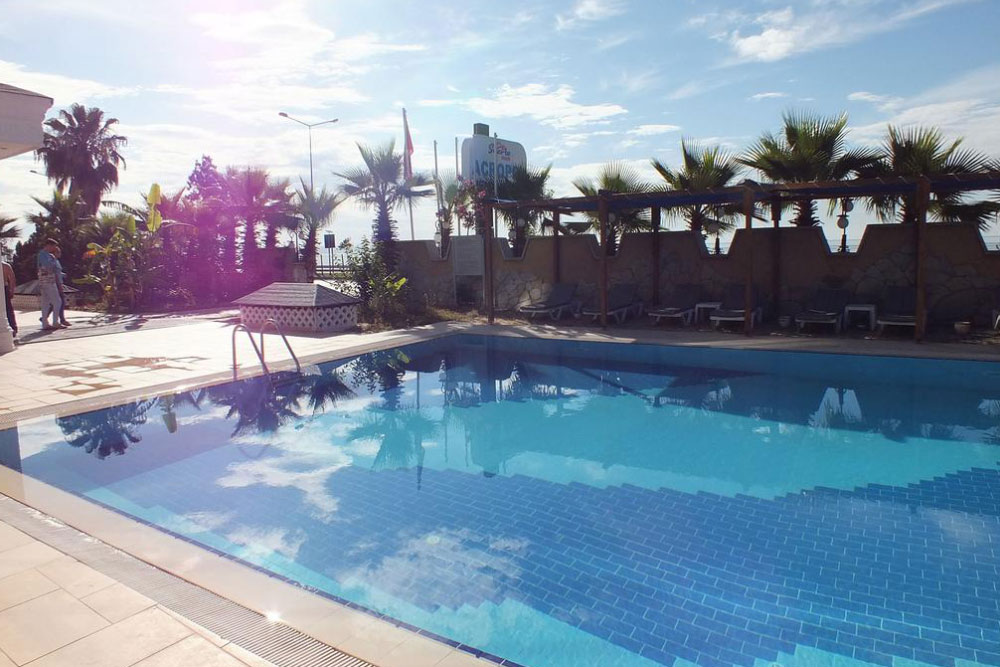 Уютный отель находится на побережье Средиземного моря, в местечке Коньяалты, в 8 км от города Анталии, в 15 км от одноименного международного аэропорта. До пляжа — 50 м (через дорогу). На территории отеля имеется сад.