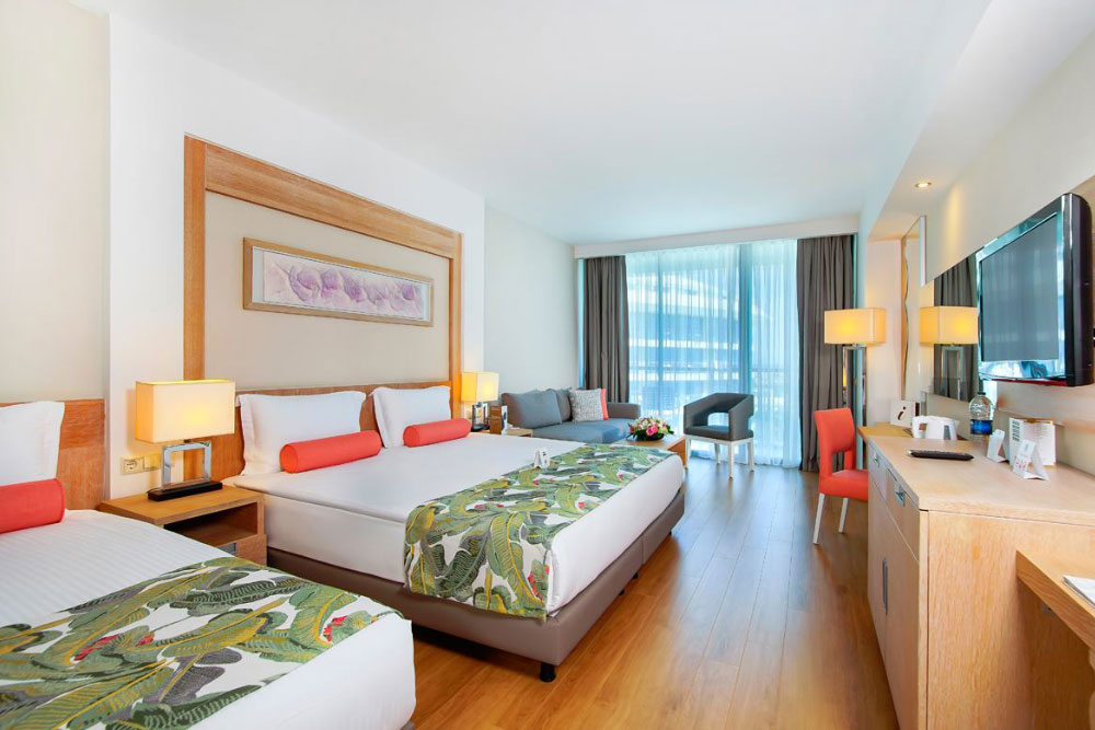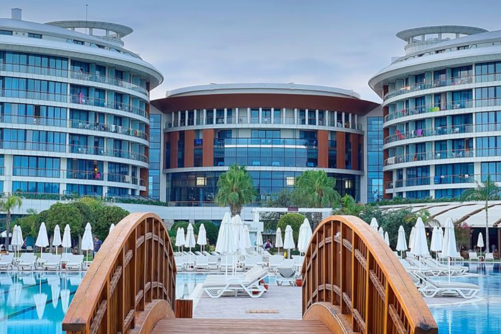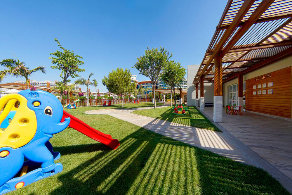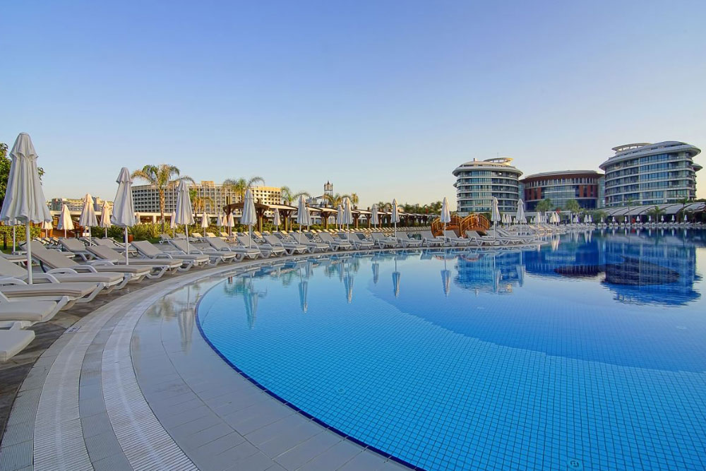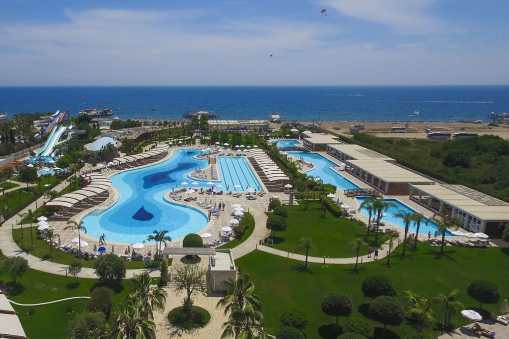 Отель расположен на побережье Средиземного моря в городе Анталии (в районе Лара, в восточной части города) и занимает обширную территорию с собственным песчаным пляжем и деревянной пристанью. До международного аэропорта Анталия — 15 км. Пляж — в шаговой доступности.