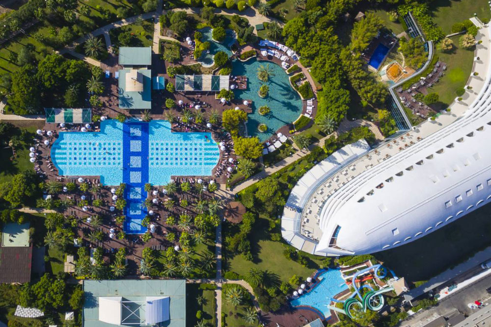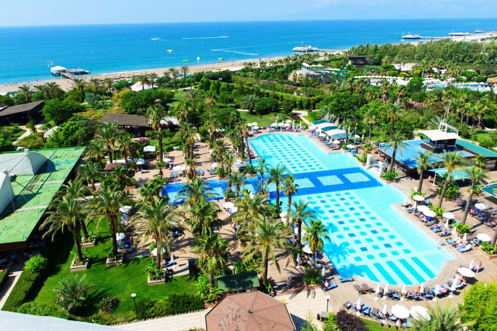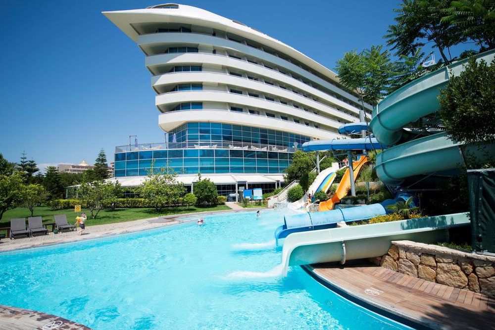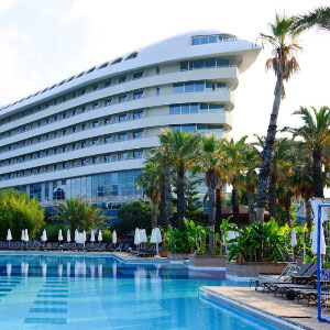 Спа-отель площадью 62 тыс. кв. м расположен на побережье Средиземного моря, в районе Лара (на самом пляже) в 15 км от центра города Анталии. До одноименного международного аэропорта — 10 км.