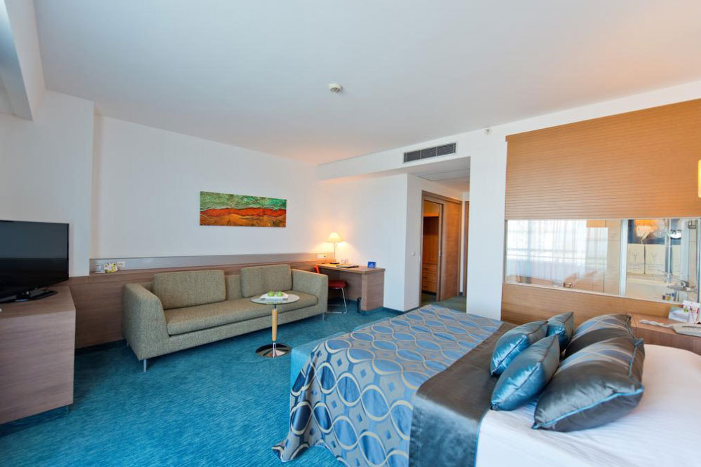 В просторных номерах, обставленных современной мебелью, — балкон с видом на море, кондиционер, спутниковое телевидение, бесплатный Wi-Fi, ванная комната (фен), телефон, мини-бар, сейф; ковровое покрытие. Доступны услуги няни, врача, фотографа, прачечной, химчистки, парикмахерской, глажки одежды.