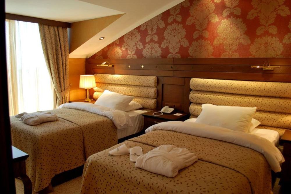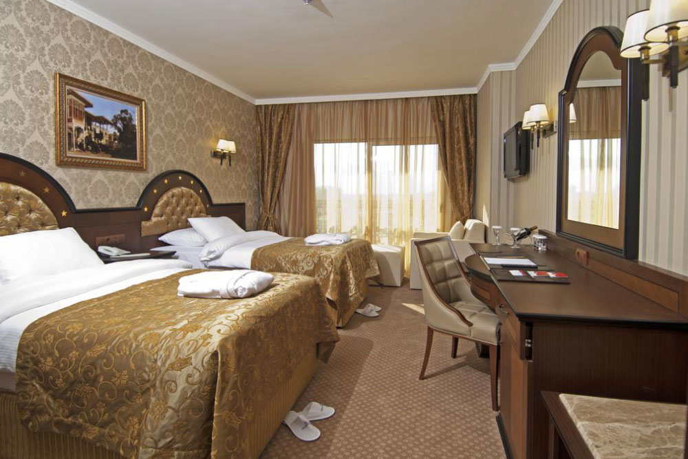 В просторных номерах — французский балкон с видом на море, элегантная мебель, роскошное постельное бельё, ванная комната (фен, туалетные принадлежности), спутниковое телевидение, бесплатный Wi-Fi, кофеварка/чайник, сейф, телефон. Доступны услуги няни, парикмахерской, прачечной, химчистки, глажки одежды, чистки обуви.