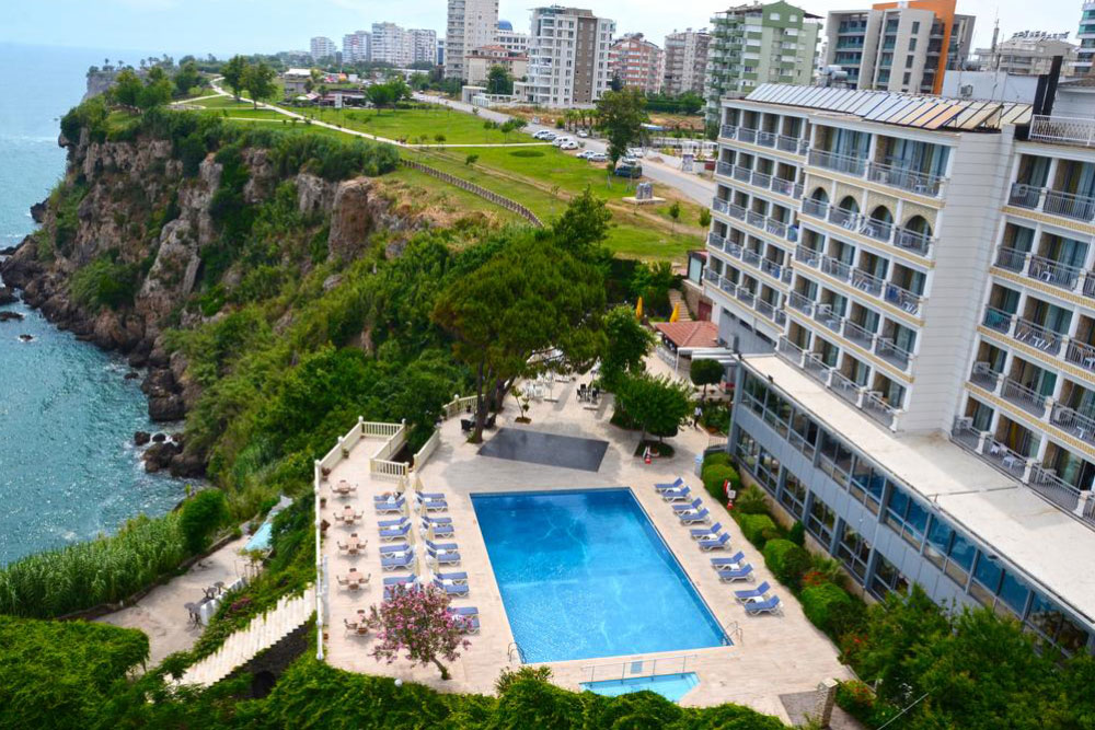 Отель с видом на море, расположенный на вершине скалы, находится в 6 км от исторических районов Анталии и Калеичи на Средиземноморском побережье. До аэропорта Анталия — 8 км. До пляжа Лара — 5 минут езды (трансфер).