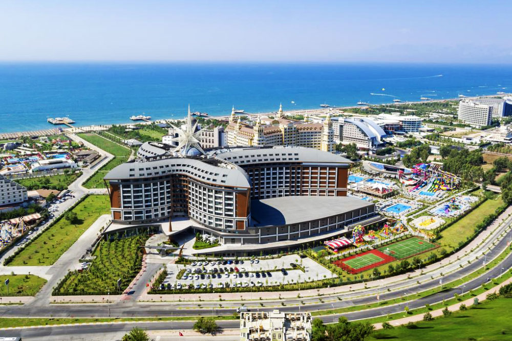 Отель общей площадью 70 тыс. кв. м находится на побережье Средиземного моря, в Анталии, в районе Лара, в 19 км от Старого города (Калеичи). До международного аэропорта Анталия — 14 км. На территории отеля имеется сад. До пляжа — 250 м (через променад).