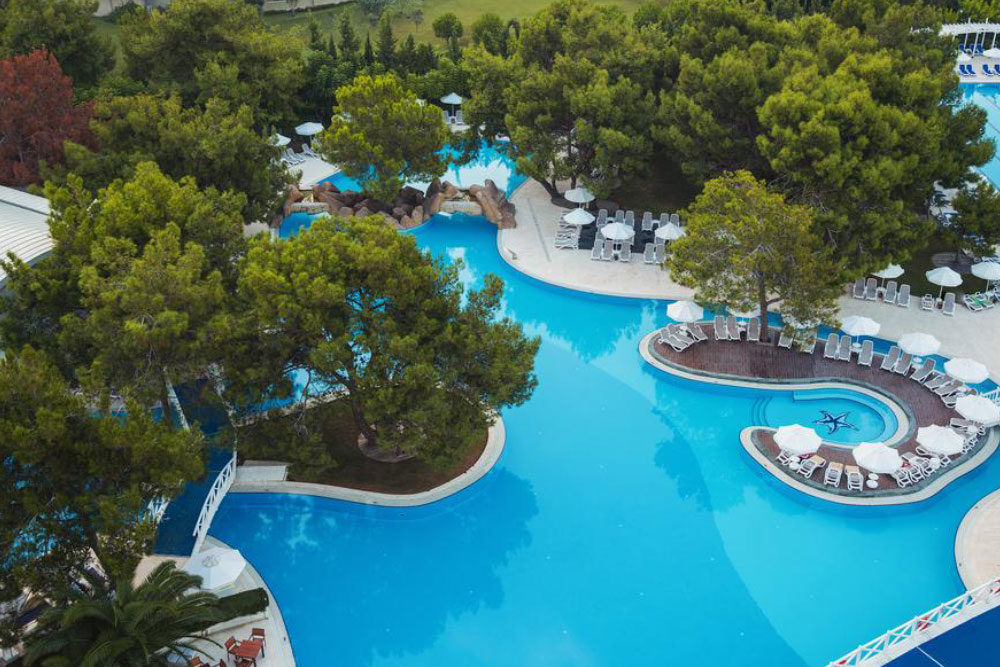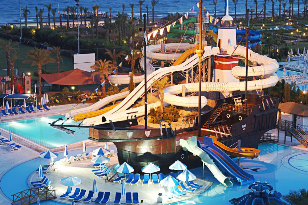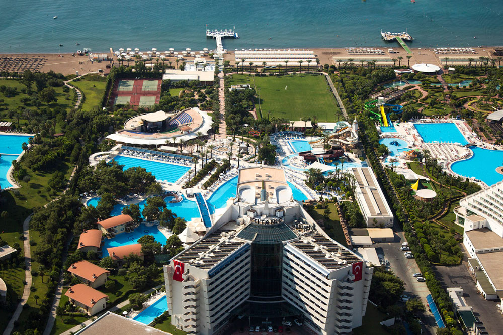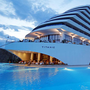 Здание отеля общей площадью 95 тыс. кв. м, построенное в форме круизного лайнера (весь обслуживающий персонал одет в матросскую форму), расположено на побережье Средиземного моря, в районе Кунду, в 13 км от города Анталии. До одноименного международного аэропорта — 10 км. Принадлежит сети отелей Titanic Hotels. Площадь большого открытого бассейна курортного отеля составляет более 5 000 кв. м. Пляж протяжённостью 165 м — в шаговой доступности.