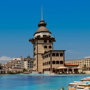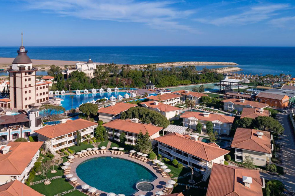 Великолепный курортный отель расположен на побережье Средиземного моря, в 15 км от центра города Анталии. До одноименного международного аэропорта — 15 км. Пляж — в шаговой доступности.