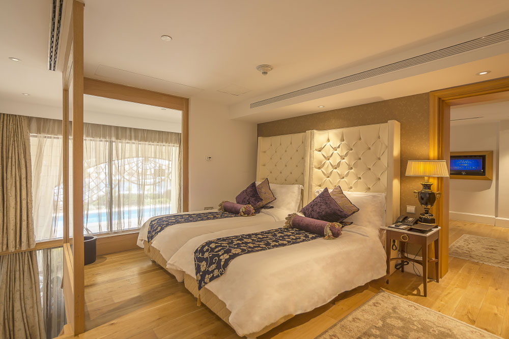 В роскошных номерах — балкон (или терраса) с видом на Таврские горы, Средиземное море или бассейн, кондиционер, дистанционное управление освещением, ванная комната (фен, туалетно-косметические принадлежности), мини-бар, телефон, сейф, спутниковое телевидение. Доступны услуги няни, врача, парикмахерской, прачечной, химчистки, глажки одежды, чистки обуви.