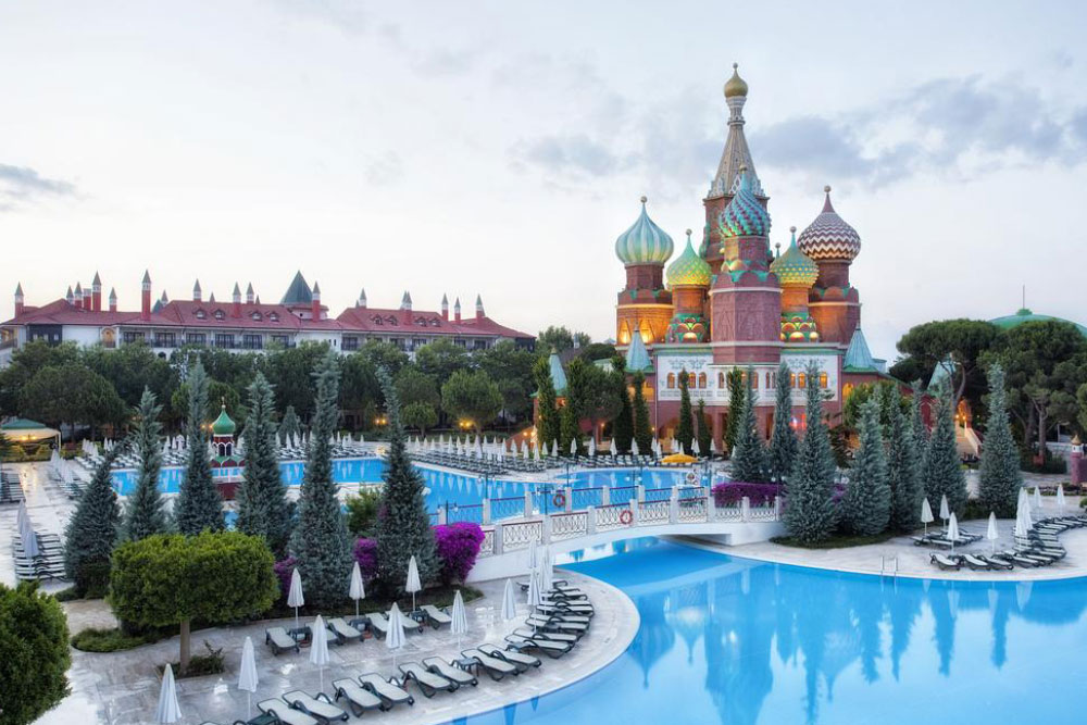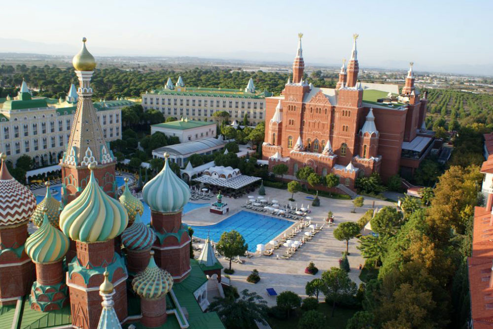 Курортный отельный комплекс, своей архитектурой и внутренним убранством полностью повторяющий Московский Кремль, занимает территорию площадью 75 000 кв. м. Находится на побережье Средиземного моря, на одном из самых современных курортов Анталии (в местечке Кунду) в 21 км от центра Анталии, в 12 км от одноименного международного аэропорта. Пляж рядом с отелем.