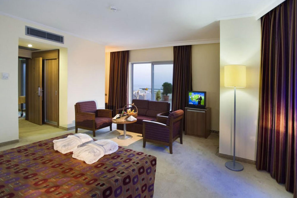 В просторных и гармонично оформленных номерах — спутниковое телевидение, ванная комната (фен, туалетные принадлежности), кондиционер, холодильник, Доступны услуги няни, парикмахерской, прачечной, химчистки, глажки одежды.