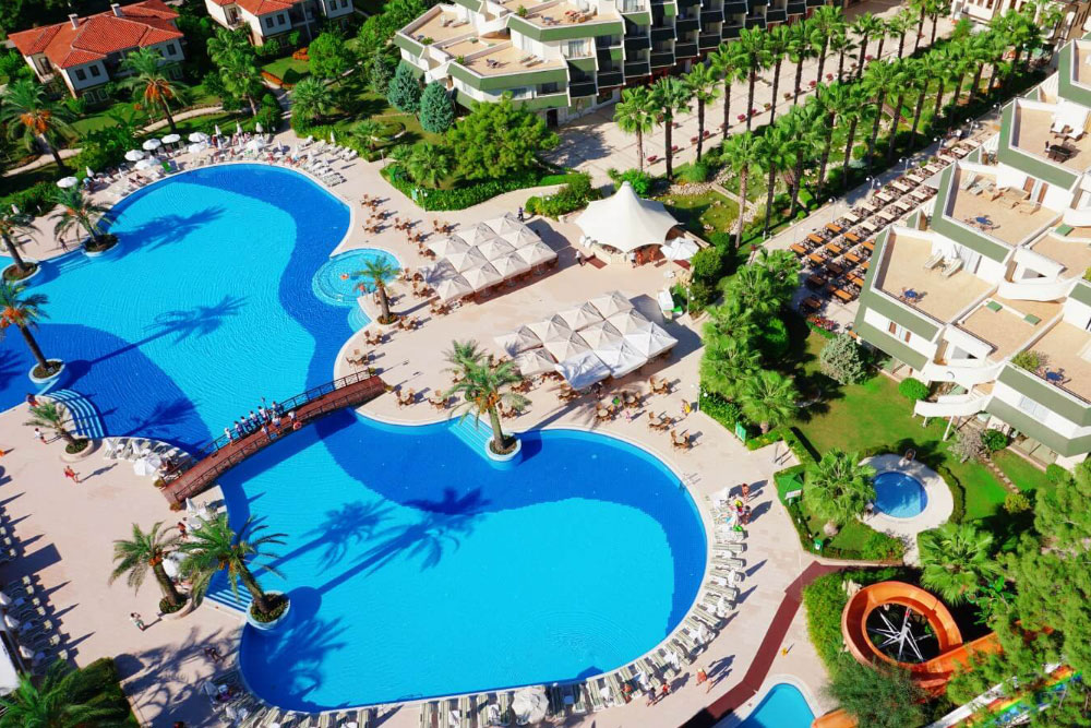 Курортный спа-отель с видом на море и горы, занимающий территорию 60 тыс. кв. м, находится на побережье Средиземного моря в центре туристического посёлка Текирова, между античными городами Фазелисом и Олимпосом, в 17 км от Кемера. До центра города Анталии — 60 км, до одноименного международного аэропорта — 70 км. Пляж рядом с отелем.