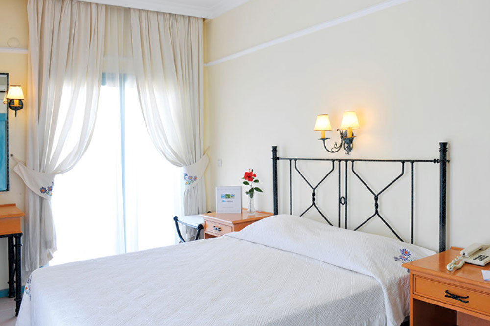 В светлых просторных номерах — балкон, кондиционер, спутниковое телевидение, ванная комната (фен), белое постельное бельё, мини-бар, сейф, телефон; пол выложен плиткой. Доступны услуги врача, прачечной, парикмахерской.
