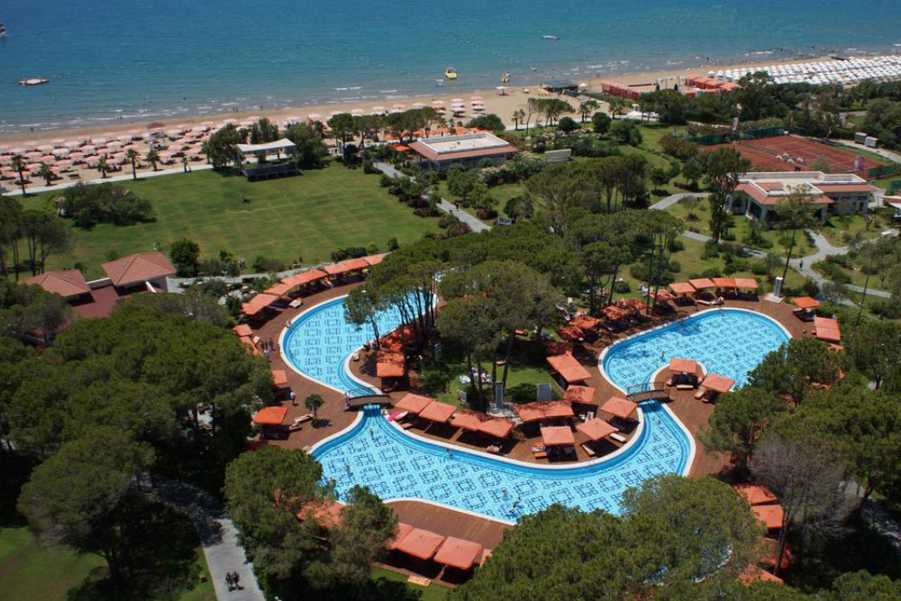 Курортный отель площадью 120 тыс. кв. м для некурящих расположен непосредственно на пляже, в 1 км от Сиде на юге Турции. До Антальи — 70 км. До одноименного международного аэропорта — 65 км, до аэропорта Газипаша-Аланья — 91 км.