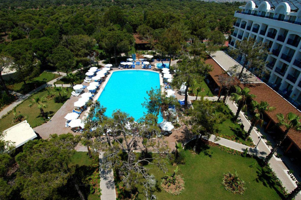 Новый современный отель общей площадью 14 тыс. кв. м, расположенный в сосновом бору, находится на юге Турции, в 5 км от античного города Сиде, в знаменитом районе Титрейенгель. До международного аэропорта Анталья — 65 км. До пляжа — 400 м (через променад).