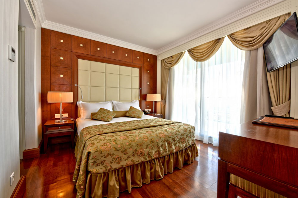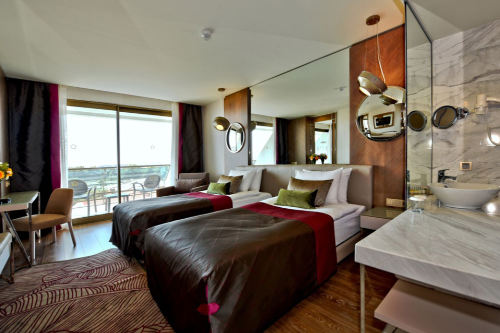В номерах, обставленных современной мебелью, — балкон, кондиционер, спутниковое телевидение, ванная комната (фен), мини-бар, телефон, сейф. Доступны услуги няни, врача, фотографа, прачечной, химчистки, глажки одежды, парикмахерской.