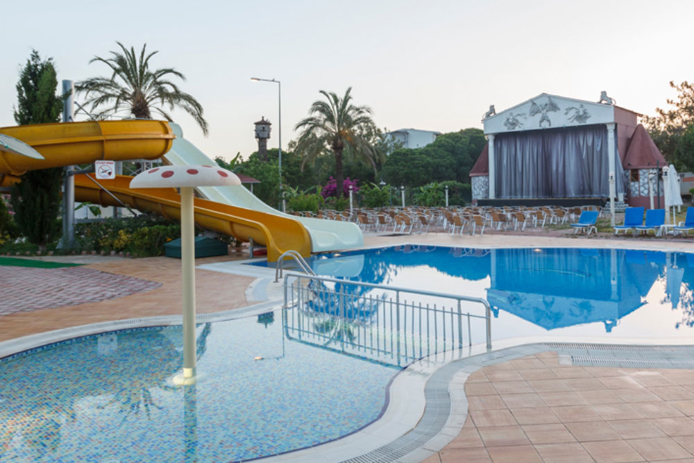 Отель, окружённый сосновым лесом, находится на юге Турции, в 8 км от центра г. Сиде. До международного аэропорта Анталья — 70 км, до аэропорта Газипаша-Аланья — 95 км. До пляжа — 350 м.